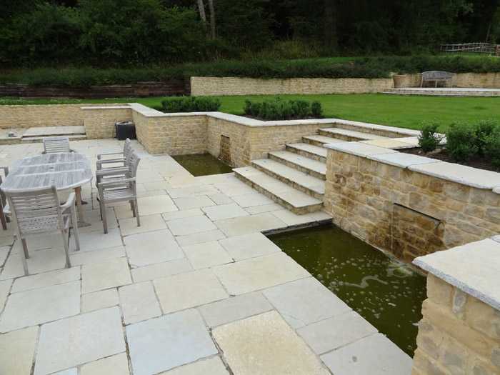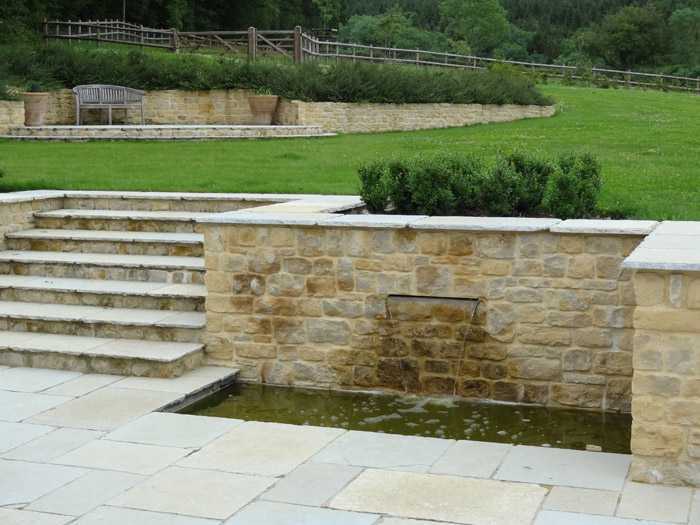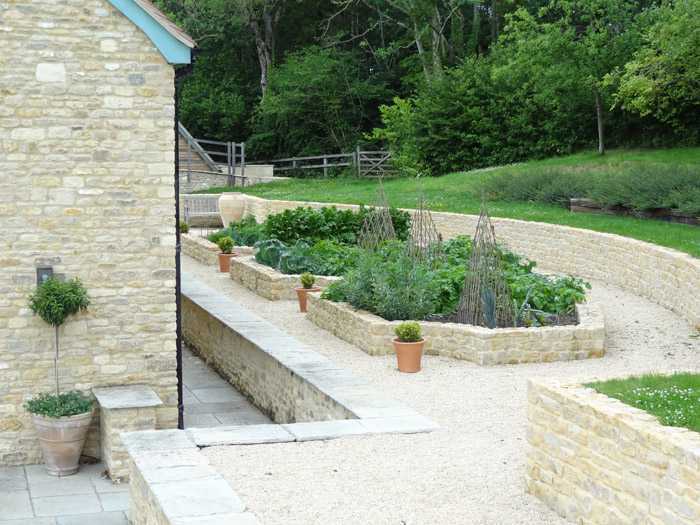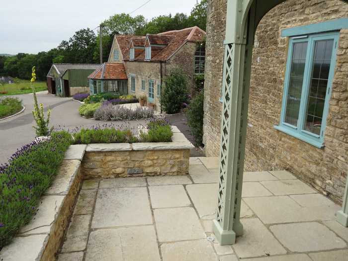 This is a beautifully restored farmhouse with cottage in Somerset. The main farmhouse garden has been designed to provide more useable level areas of lawn, a large terrace for outdoor living and attractive water features. In addition, there is a satellite seating area to enjoy the views. I created a raised vegetable garden where there was a bank of heavy clay to the rear of the property. All materials used are in keeping with the buildings and the garden is designed to be wheelchair friendly.