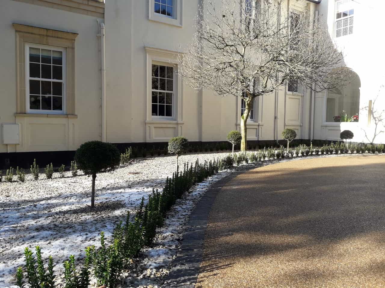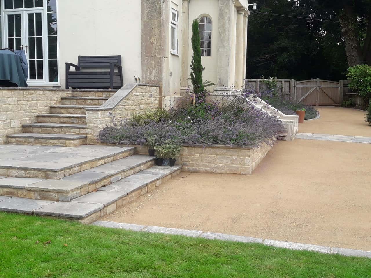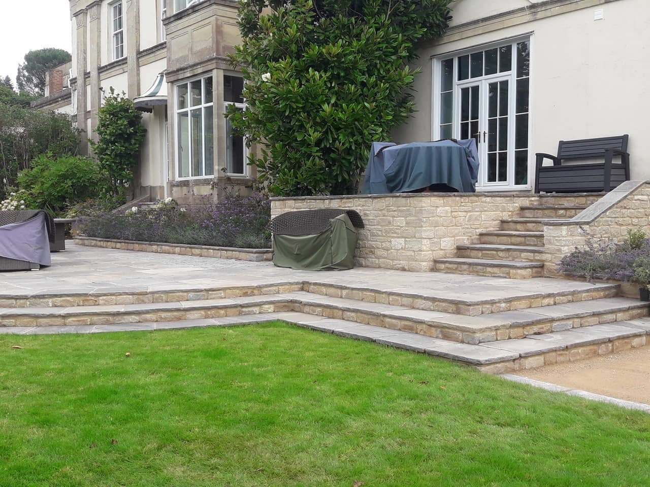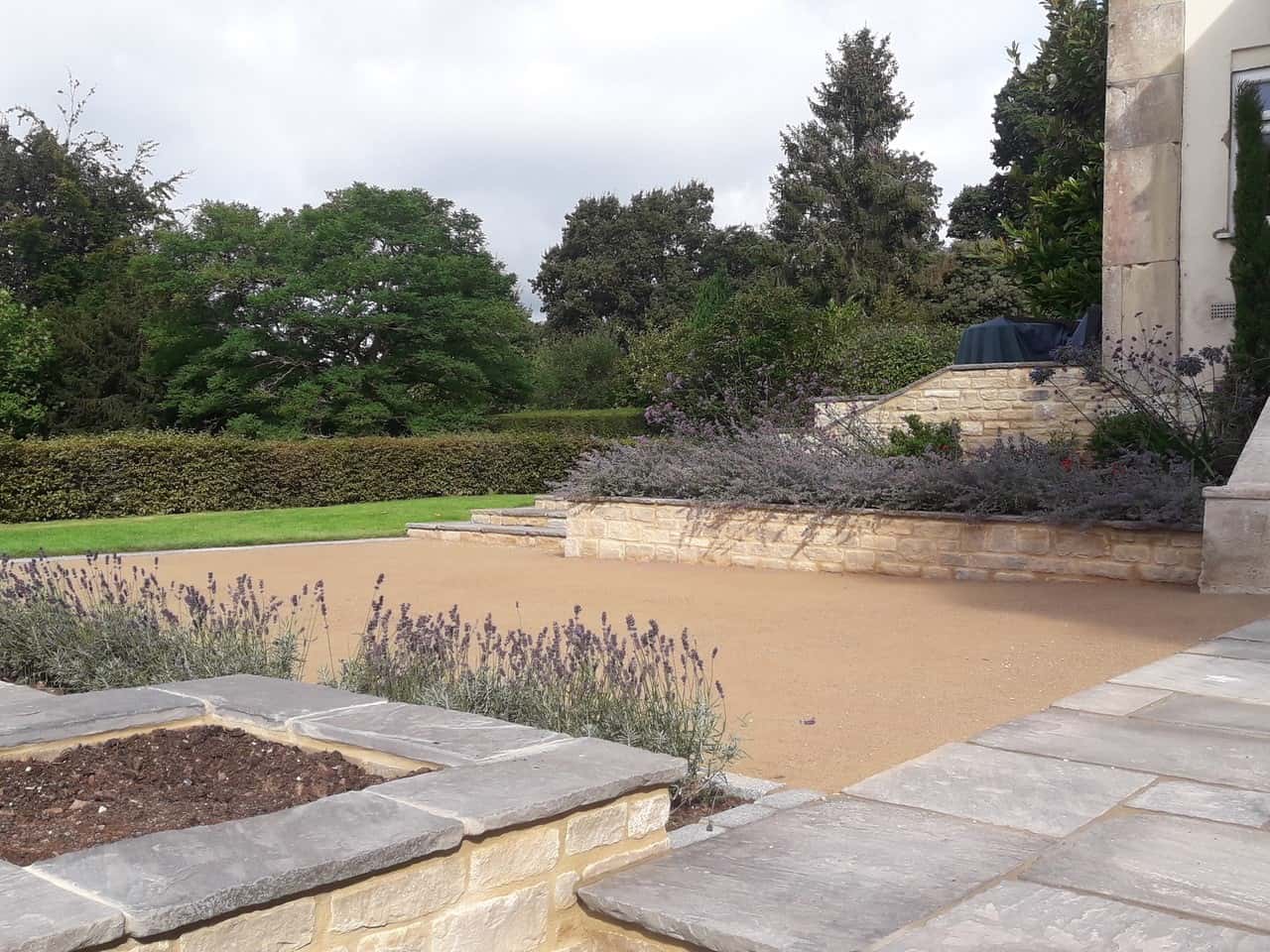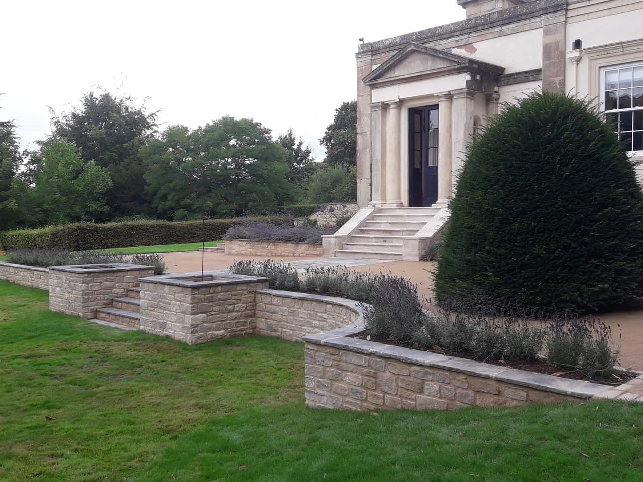 This garden has been designed to be in keeping with the Georgian style of the property. Stone retaining walls have been used to sympathetically deal with the various level changes within the rear garden.