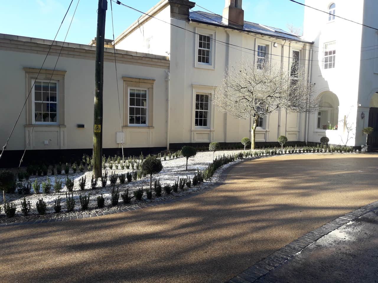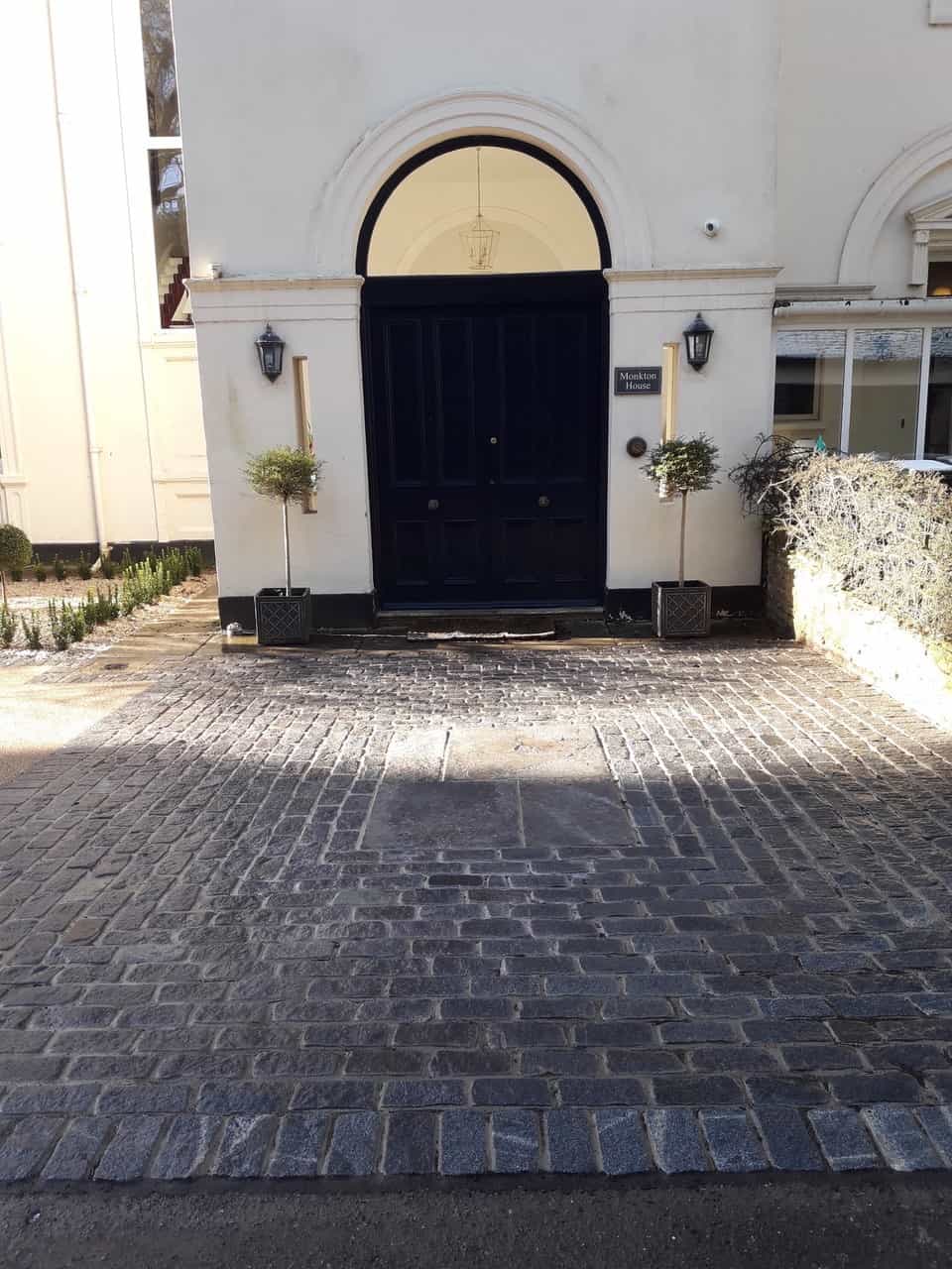 The front drive was just a huge tarmac area, which has now been re-shaped incorporating a resin bonded parking area. The front entrance has been cobbled to add interest and highlight the front door.