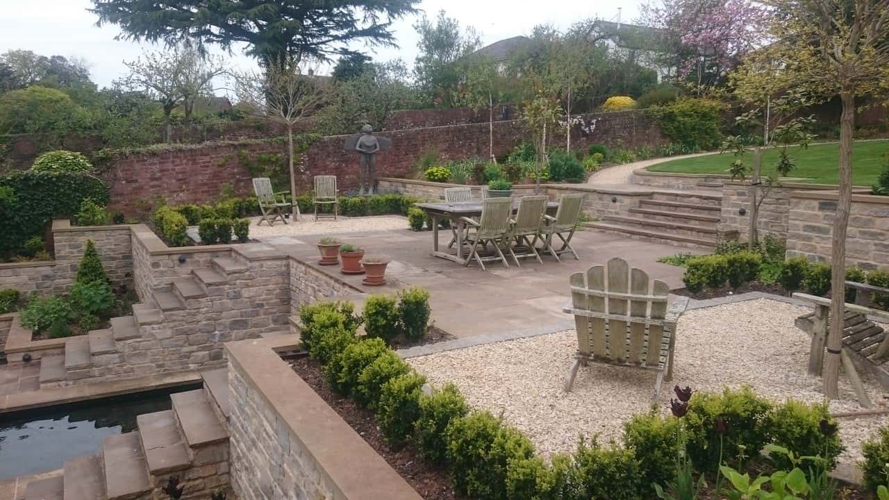 The sloping aspect of this garden required it to be designed as three usable terraces, and also to be in keeping with the grand and symmetrical style of the property. The terrace areas include a lower formal pool and steps, a mid formal seating area and lawn, and a formal vegetable garden at the very end of the garden.