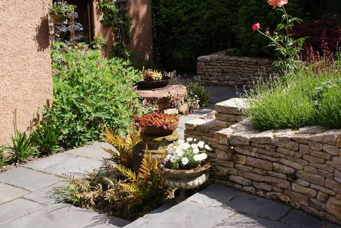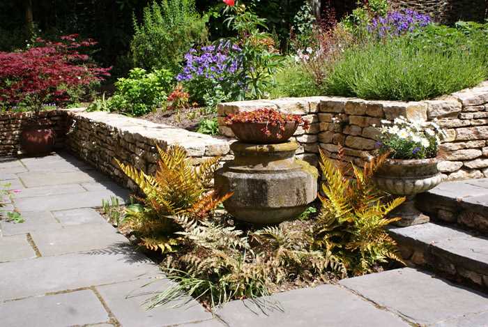 The brief for this project was to create a terrace in place of a banked area of lawn near to the house. Purbeck limestone was selected as the native stone was unsuitable.
